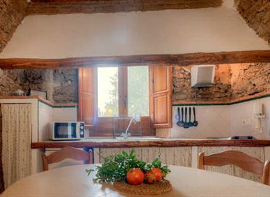 La cuisine dispose d'un réfrigérateur, cuisine électrique, micro-ondes-grill, four-grille pain, mixeur, cocotte minute et tout le mobilier nécessaire pour cuisiner et servir.