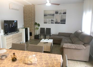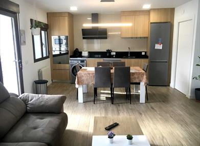 - Un salon ouvert de 30 m2 avec cuisine entièrement équipée. Télévision 52'', ventilateur au plafond et canapé avec méridienne coulissante.