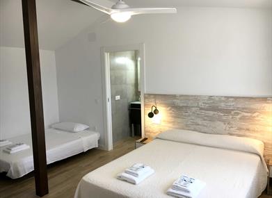 - Quatre chambres avec lits doubles de 150 cm x 200 cm, air conditionné avec pompe à chaleur, télévision 32'' et ventilateur au plafond.