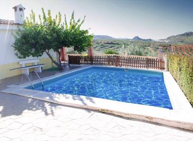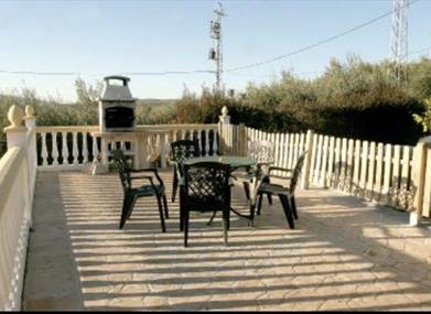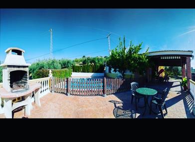 La grande terrasse avec barbecue et piscine permet d'apprécier une vue panoramique sur la Sierra Subbética et le village de Luque.