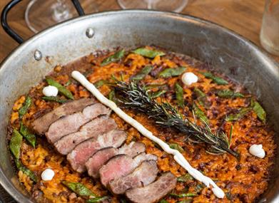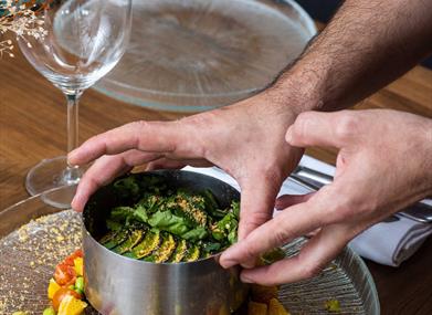 À la carte de Pablo Vega et de son équipe de cuisine, vous retrouverez de divins plats, qui ne demandent qu'à être découverts. Dionysos et ses ménades en sont témoins ! Des plats à la folie structurée. Une cuisine traditionnelle de ragoûts réinterprétés avec les techniques les plus modernes et des associations de saveurs goûteuses.