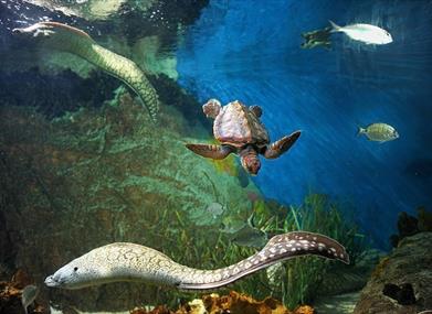 L'installation abrite environ 3 000 exemplaires appartenant à 270 espèces différentes. On remarque surtout les impressionnants requins gris et le requin-taureau, les hippocampes ou encore les méduses.