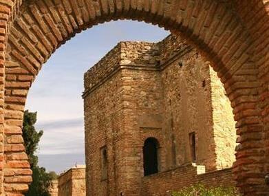 Cette construction était le palais forteresse des gouvernants musulmans de la ville. Situé sur une colline sur les pentes du Mont Gibralfaro, elle a été construite au XIe siècle sur les ruines d'une forteresse romaine. Elle était composé de 110 grands tours et quelques tours mineurs, y compris la Torre del Homenaje.