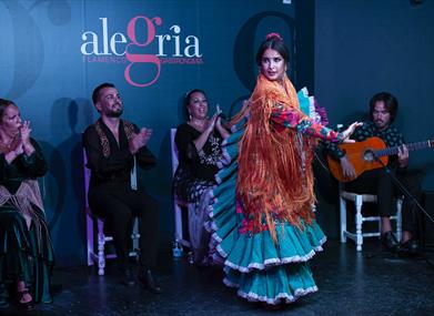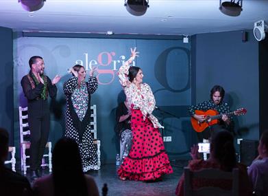 Alegría Flamenco & Gastronomía est situé en plein cœur de la Malagueta, à quelques mètres du ponton « Muelle Uno », à Malaga.