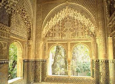 L'Alhambra a été le palais, citadelle et force, résidence des sultans Nazaríes et des grands fonctionnaires, des domestiques de la cour et des soldats d'élite (les siècles XIII à XIV). C'est actuellement un monument dans lequel quatre zones se distinguent: les Palais, la zone militaire ou la Forteresse, la ville ou Médine et la propriété agraire du Generalife, tout cela dans un environnement de zones couvertes de bois, de jardins et de grands jardins.
