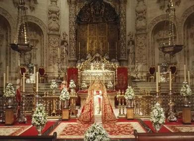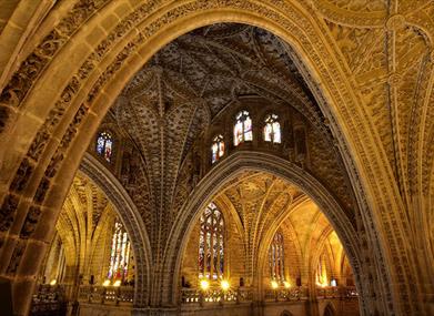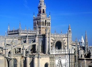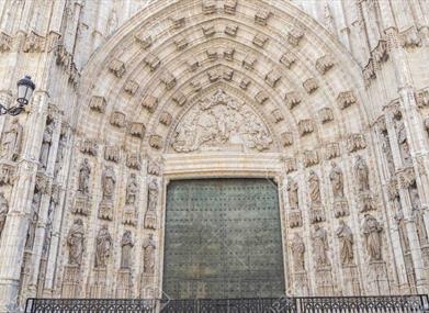 Aujourd'hui, la Cathédrale de Séville est le plus grand temple gothique au monde. Outre la Giralda, la Cours des orangers est un héritage direct de l'époque de la mosquée. La Cathédrale de Séville compte 10 portes ; la Puerta de la Asunción est la porte principale du temple et la Puerta del Perdón, la plus ancienne de toutes et la seule qu'il reste de l'ancienne mosquée almohade. L'intérieur de la cathédrale, est composé de cinq nefs. La nef centrale (36 mètres) et celle de la croisée du transept (40 mètres) sont les plus hautes. Parmi les nombreux autels et chapelles, l'un des plus surprenants est la Capilla Real, avec l'image de la Virgen de los Reyes, patronne de la ville, et où reposent les restes de nombreux monarques. Ferdinand III, sa femme Béatrice de Souabe, Alphonse X le Sage ou Pierre I le Cruel y sont notamment enterrés.
