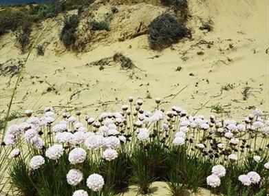 Stabilisant les dunes et la côte, des plantes font leur apparition. Elles supportent une aridité élevée et les assauts du vent, du sable et du sel, également appelées forêts décoiffées, ce sont la camarine, la sabine, les clavellines et l'oyat.