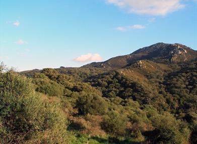 Los Alcornocales, comme son nom l'indique, constitue la masse de chênes-lièges la plus importante de la péninsule ibérique, la mojea, qui se développe dans des environnements ensoleillés en compagnie des arbousiers, des filaires à feuille étroite et des nerprun alaternes, alors que sur le versant ombragé il cohabite avec le chêne-liège et favorise la présence d'une grande quantité de champignons. À basse altitude apparaissent les bujeos, de petits ilots de végétation qui conservent des traces des anciens bois d'oliviers sauvages qui cohabitent avec des bruyères, des palmiers nains, des myrtes, des champs de culture, des pâturages où paissent des vaches, aussi bien « retintas » que de combat.