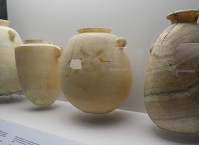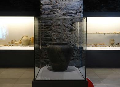La pièce la plus important de point de vue archéologique est le beau verre égyptien du XVII siècle, sculpté à quartz à l'état solide, qui a été découvert dans une maison. En outre, on a trouvé de nombreux objets funéraires, des sondages aux bijoux qui ont fait partie des offrandes funéraires.