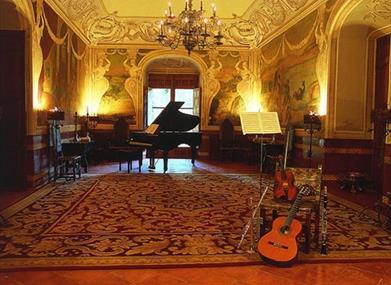 Dans ses pièces il y a des collections de poteries riches, des peintures, des armes à feu, des mosaïques, vieux furnitures, des sculptures, des tuiles ornementales, Cordovan des cuirs et une bibliothèque énorme, contenant plus de 6,000 volumes.
