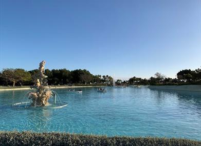 Il dispose également d'un lac artificiel de plus de 9 000 mètres carrés, où vous pourrez naviguer grâce à un service de location de barques, et un magnifique carrousel de style vénitien avec près de 50 figures de girafes, petits chevaux, carrosses et maisonnettes qui font le bonheur des plus petits. Il y a également une tour mirador de 15 mètres de hauteur, un réseau de sentiers, une aire d'exercice physique, une route cyclable, une piste de course et une grande aire de jeu pour enfants.