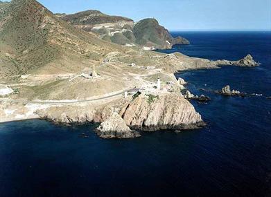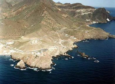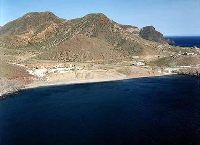 Plage vierge qui peut être vue du haut de la route qui parcourt le Cabo de Gata avec de belles vues.