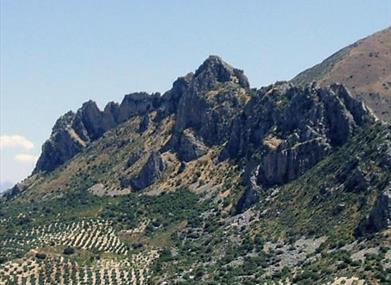 Comme île installée en partie sur le Guadalquivir, la douce montagne de Sierra Mágina est soulevée dans la jante de la campagne des oliviers de Jaén située comme un tertre extraordinaire et perpétuel.Ici, on trouve le plus haut niveau de la province de Jaénet l'un des sommets les plus importants d'Andalousie, le pic Mágina qui, avec ses 2167 mètres couronne un massif calcaire, abrupt et inaccessible, abandonné par des bergers et des cimes enneigées qui est aujourd'hui une scène idéale pour des montagneux courageux.Ses conditions orographiques, avec une croissance altitudinale très remarquable sur une extension réduite, fournit une diversité paysagère excellente. Ainsi, nous rencontrons des lieux tels que l'Adelfal de río Cuadros, le plus étendu d'Espagne ; la cascade surprenante du Zurreón, une jolie chute d'eau qui en hiver peut se congeler ; ou la Pinar de Cánava, une formation de pins d'Alep (Pinus halepensis) déclaré comme monument naturel qui est couronné par une carrière impressionnante dont on obtenait les meules qui approvisionnaient de nombreux moulins hydrauliques de la région.
