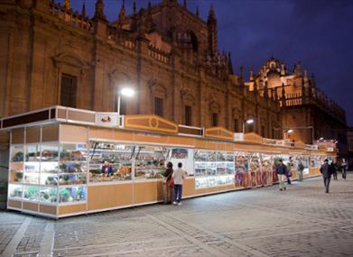 Foire de la Nativité de Séville qui, année après année, devient une référence nationale, se déroulant dans le centre historique de la ville, dans les environs des Archives des Indes et de la Cathédrale, où vous pouvez trouver tout ce dont vous avez besoin, figurines, constructions, matériaux, accessoires, des livres, et même des bonbons, pour célébrer une tradition aussi profondément enracinée.